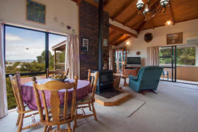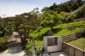 5389m2 block of land in two lots overlooking Thames. Lot 1"Three level, 3 bedroom dwelling with triple garaging on the ground floor. Open plan living area with exposed timber ceilings and covered decks for uninterrupted views over the valley and Hauraki Gulf. The main suite opens onto a private deck overlooking the fenced orchard and the grove of native trees which provide privacy.