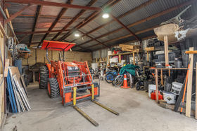 A large 15×7m shed with new concrete floor and power for storage and a potting area. There is also undercover garaging for five vehicles.
