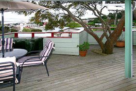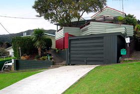 Complete with modern kitchen, open-fire and woodburner. Set on a sloping section, this home projects an aura of permanence and quality. You’ll love the leadlight French doors which open onto a private deck over-looking the Firth of Thames and township.